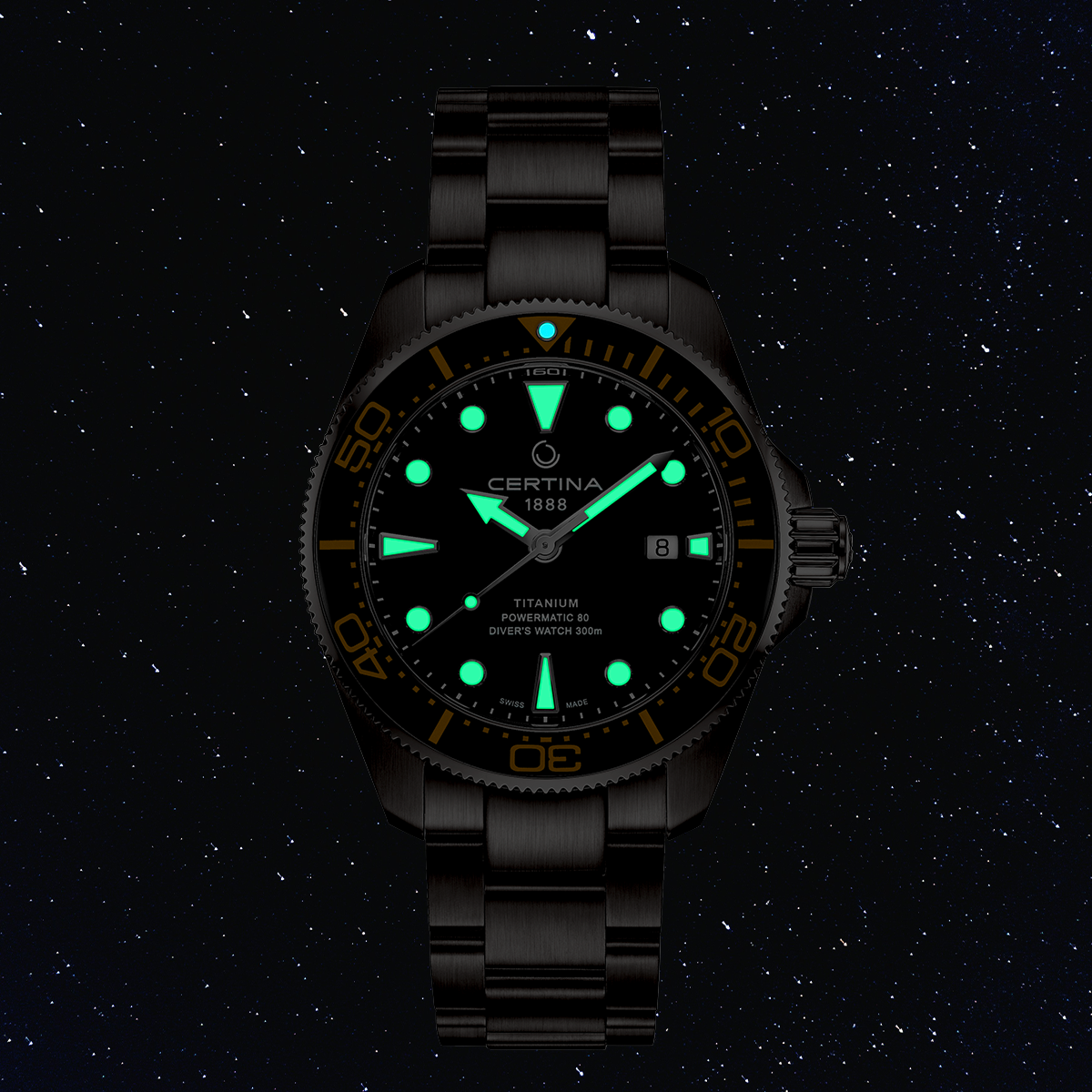 Den senaste versionen av den älskade DS Action Diver skickar Certina nu in en spelare på banan som har vinnarkvaliteter i alla grenar. Denna dykarklocka med en diameter på 43 mm samlar poäng med en tidlöst klassisk design, vattentäthet på upp till 300 meter och en modern automatisk kaliber med antimagnetisk spiralfjäder.
