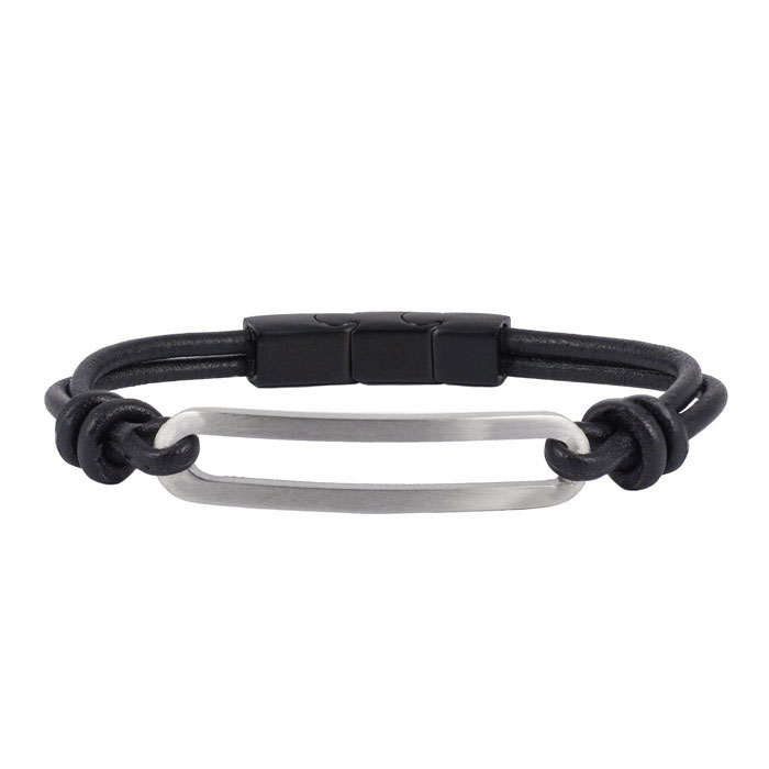 VarumärkeArockArt.nr364703KollektionBenjaminMaterialLäderFärgSvart och stålLängd18 cm + en extra bit (1 cm) Till vemHerrProdukttypArmband