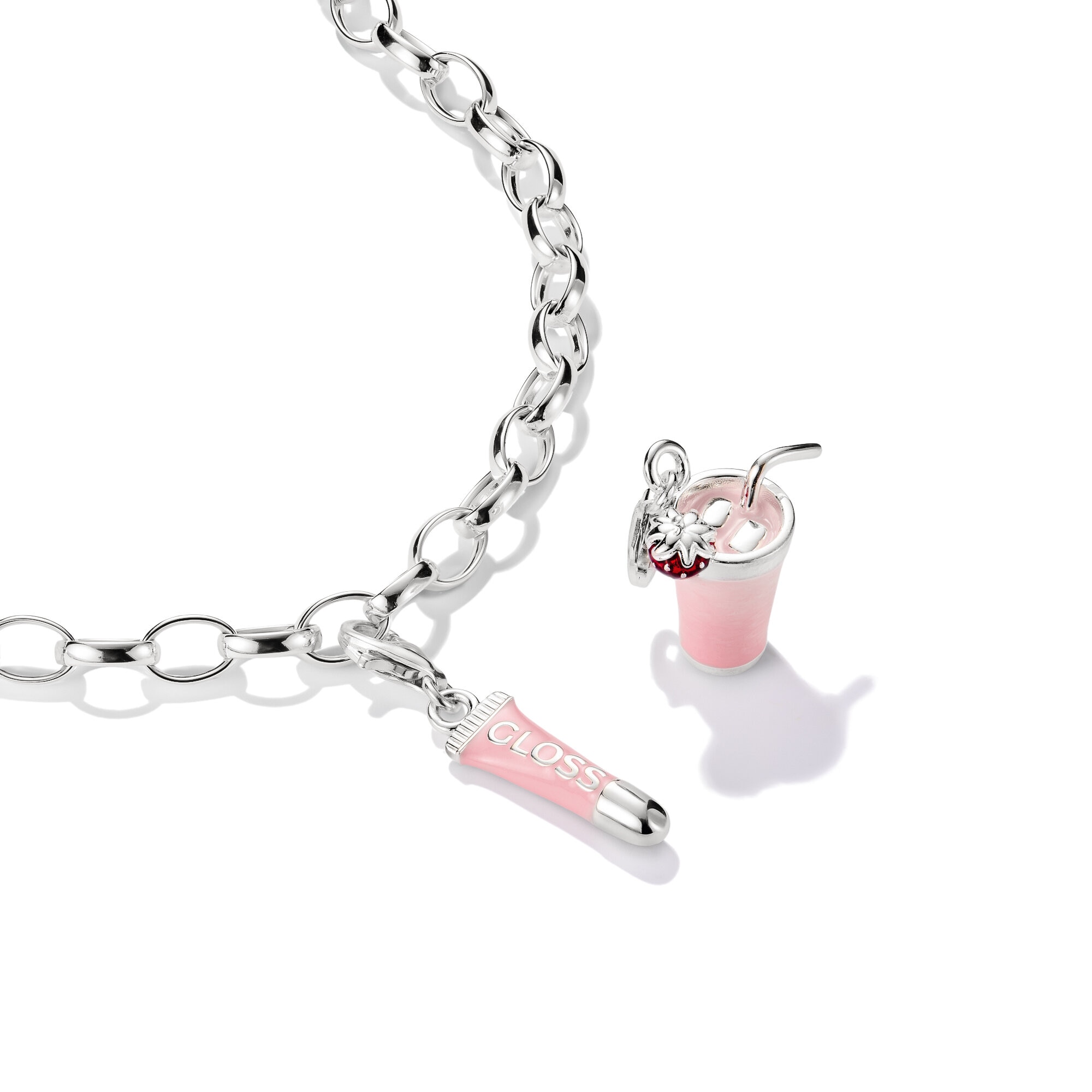 Det lilla lipgloss-hänget i 925 sterlingsilver är emaljerat i en mjuk rosaton som skimrar glansigt och feminint – inspirerat av ikoniska skönhetslooker från Tokyo. Den slanka, filigrana formen och den spegelblanka ytan gör charmen till ett modernt it-piece för fashionistas som vill uppgradera sitt armband med en lekfull, trendig accent i äkta kawaii-stil.