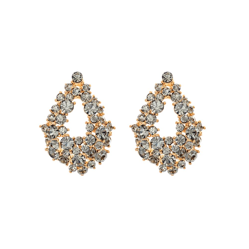 Our Alice earrings, feature multi-faceted demure grey tinted Swarovski crystals that reflect the light beautifully. Set in gold, wear them to add understated elegance to everyday looks. Match with Miranda bracelet and ring.