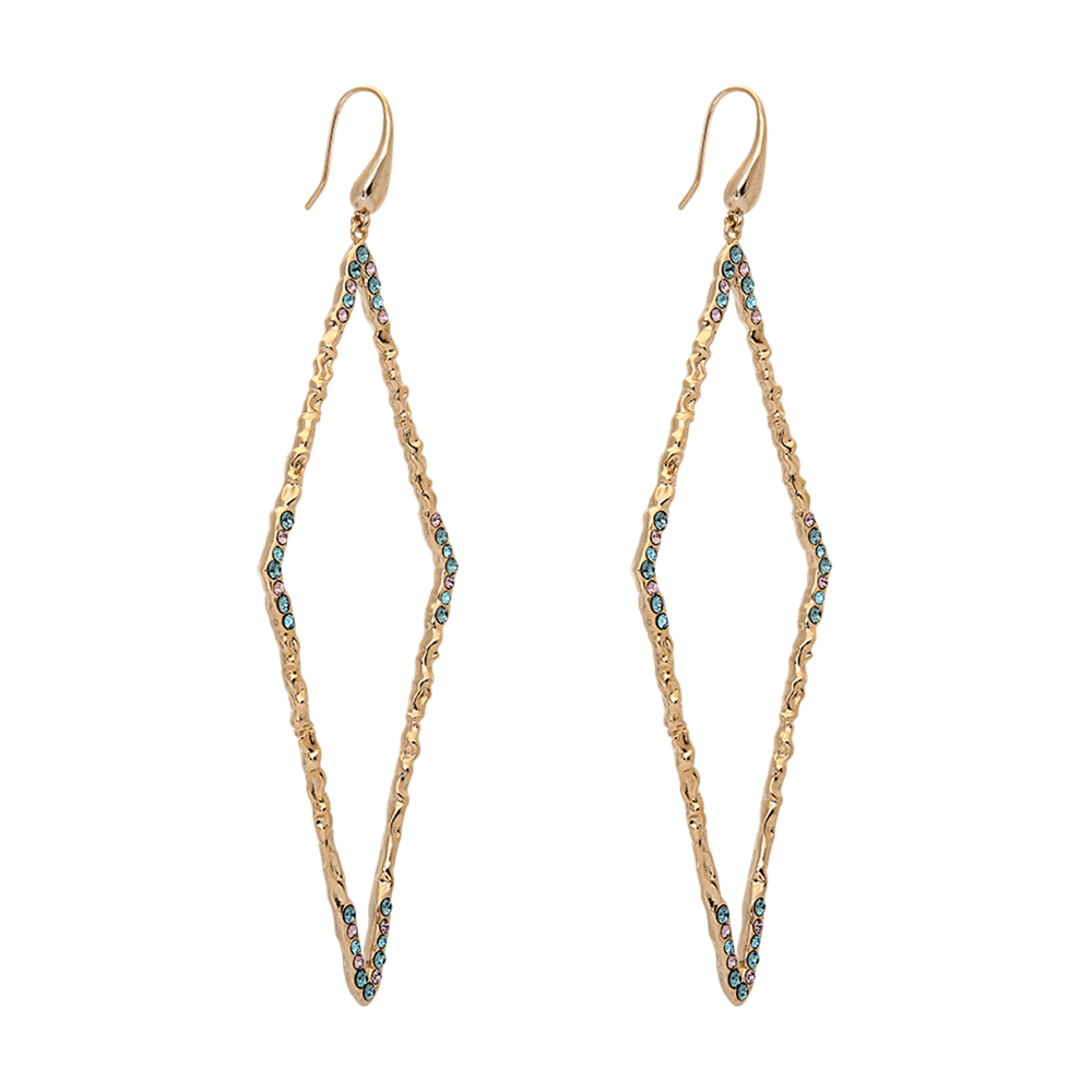 Whimsical and daring, the Jagger will make you feel as of you’ve been swept away. Set in gold, a bold diamond frame is adorned with a mixture of tiny precious gems. Perfect with an updo so you can really feel the warm winds embrace.