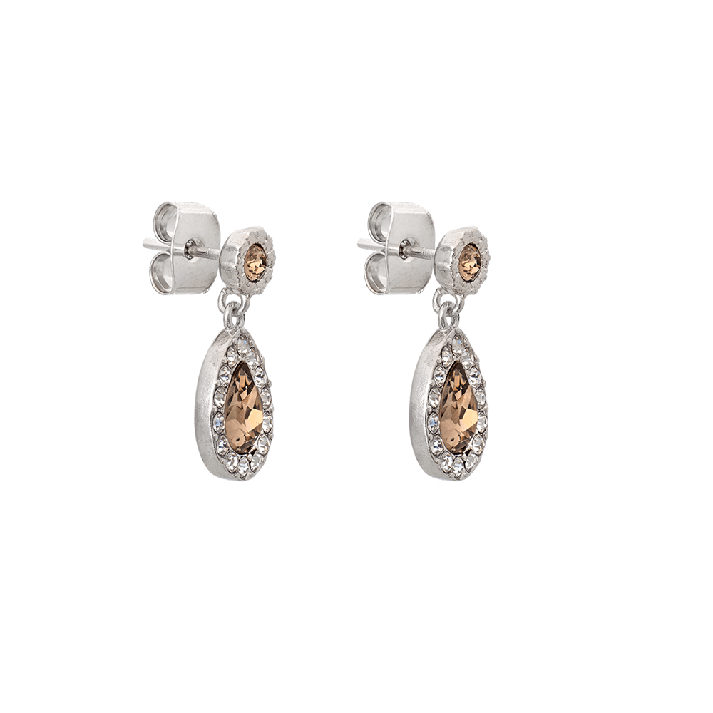 A fashionable choice for day or night, this petite pair has been made with illuminating smokey gray crystals in a silver setting. With the large teardrop stone encircled by smaller crystals, Petite Miss Amy adds sparkle to any occasion.