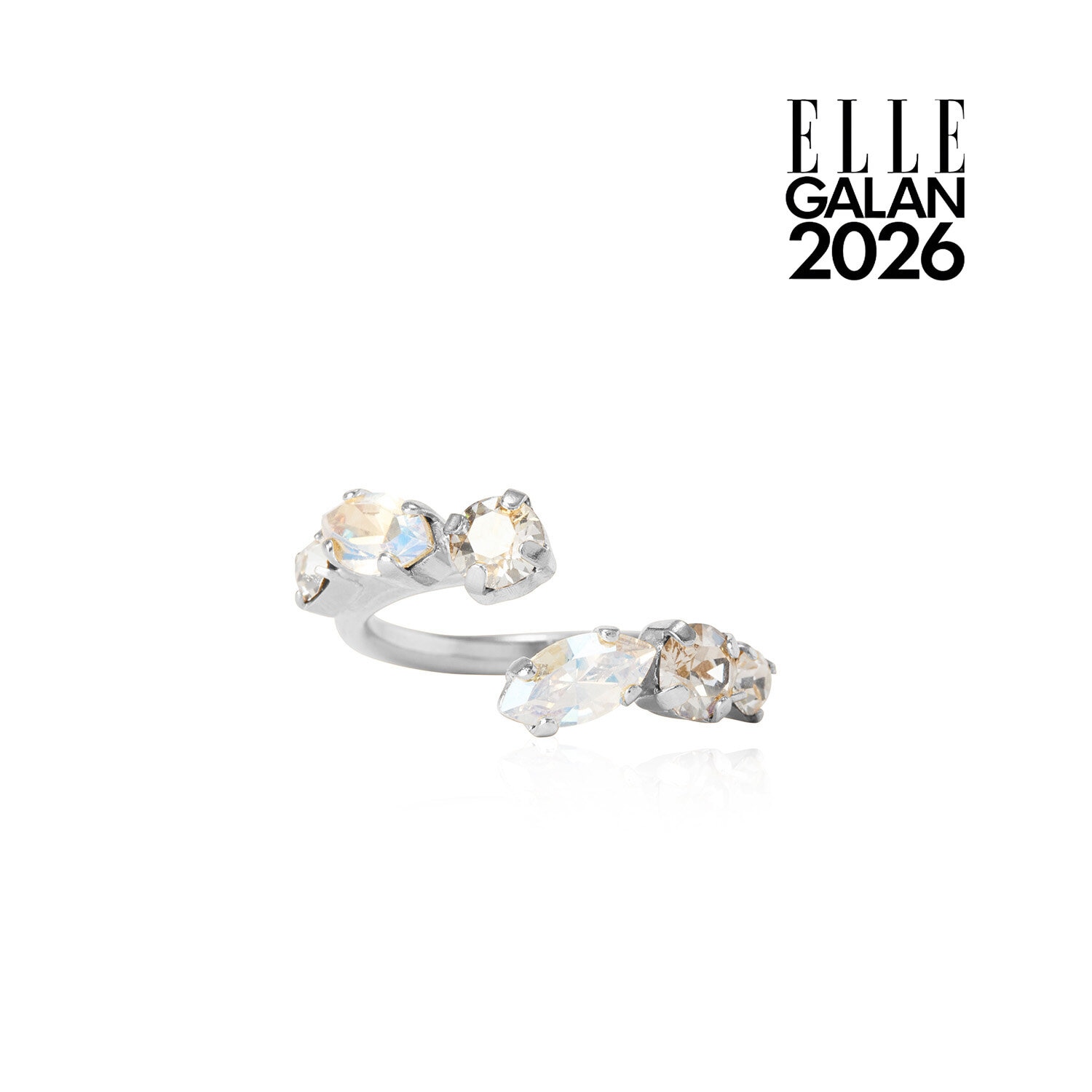 Designen är inspirerad av smyckena som Clara Hallencreutz bär på röda mattan och fångar känslan, glamouren och energin från en av modevärldens mest omtalade kvällar. En gnistrande sammansättning av Swarovski®-kristaller i mjuka Cloud Combo-toner ger ringen ett uttryck som är både iögonfallande och elegant. Varje detalj är noggrant handgjord, vilket ger ett smycke med lyster, djup och karaktär.Levereras i en exklusiv satinpåse med ELLE-Galans logga tillsammans med Caroline Svedboms signaturask.