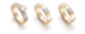 Du kan få din ring i rött, vitt, gult eller roséfärgat guld. Eller varför inte blanda? Många tycker det blir lättare att kombinera med övriga smycken och klockan. De flesta av våra ringar går även att få palladium, platina och silver.