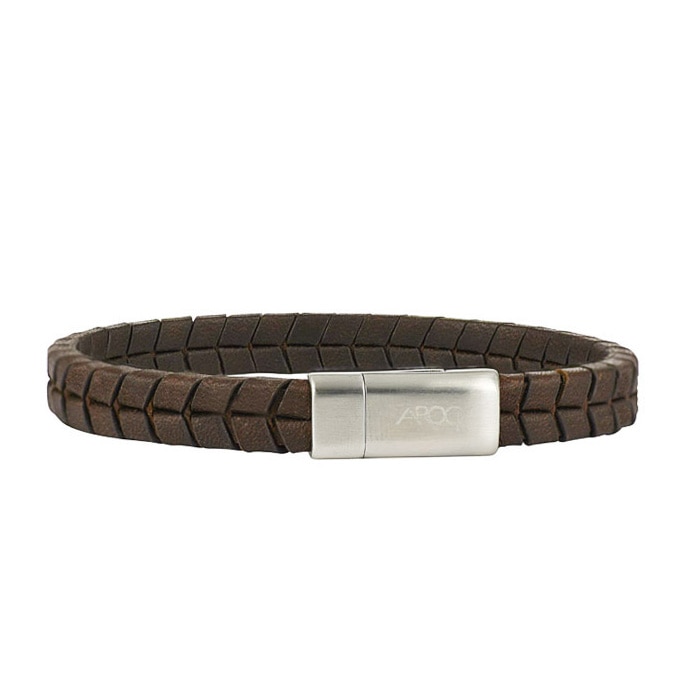 Brunt läderarmband med snygg "däckflätning" och magnetlås i mattborstat stål.
