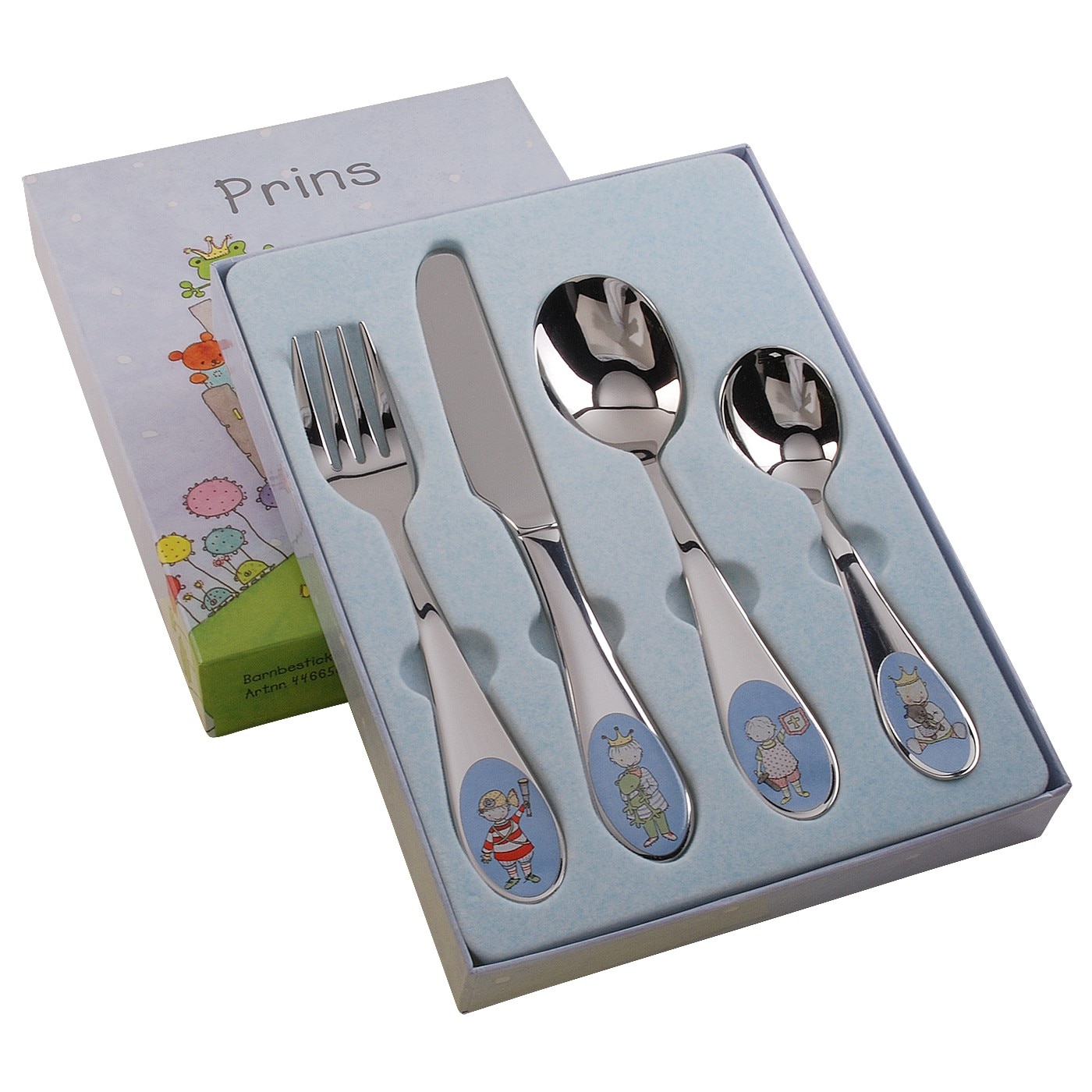 Barnbestick i 4-delar med prinstema. Utmärkt som doppresent, namngivningspresent eller födelsedagspresent.